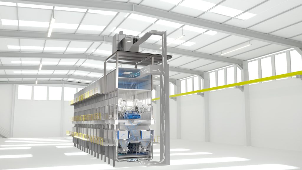 Finalmente, Dürr también instaló un sistema de ahorro energético y respetuoso con el medio ambiente para la separación del exceso de pulverización.