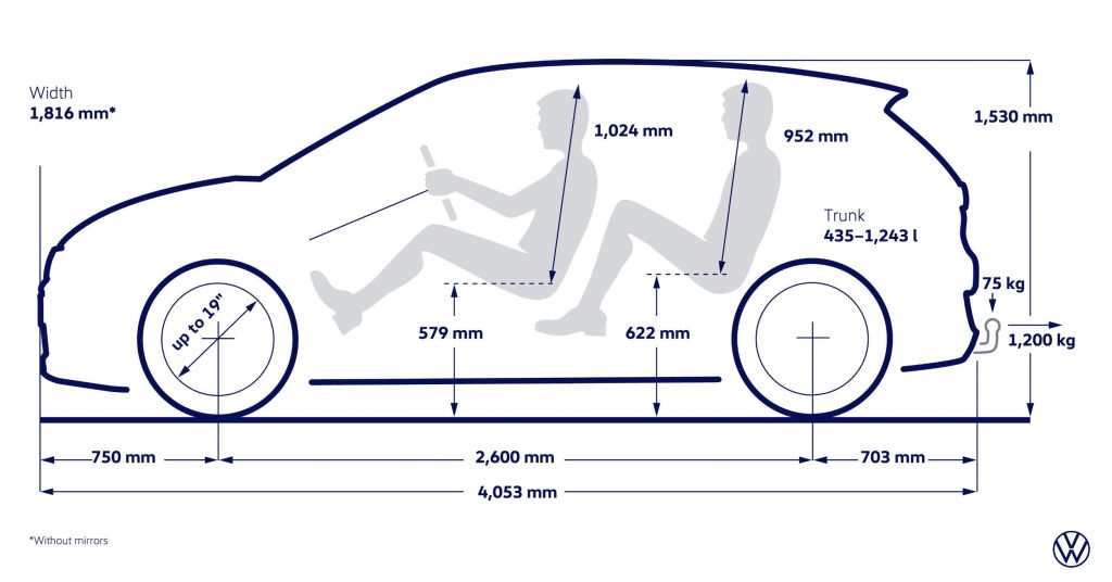 Aunque su tamaño es prácticamente comparable al del Polo clásico (MQB, Modular Transverse Toolkit), el ID. Polo eléctrico ofrece una mayor amplitud gracias a los módulos de propulsión compactos de la MEB+: los pasajeros se benefician de 19 mm adicionales de longitud interior, especialmente notables en la parte trasera.