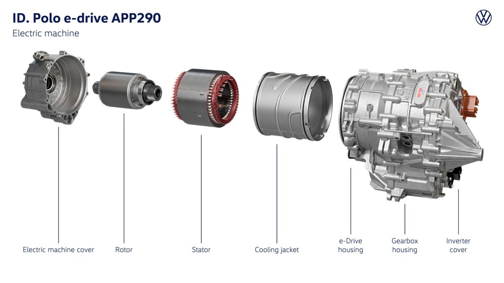 El ID. Polo debuta una tracción delantera de nuevo desarrollo basada en la Matriz Modular de Propulsión Eléctrica (MEB+), la cual ha sido perfeccionada para reducir su complejidad, número de componentes y peso, parámetros que permiten a Volkswagen reducir costos y consumo, al tiempo que ofrece claras ventajas de espacio.