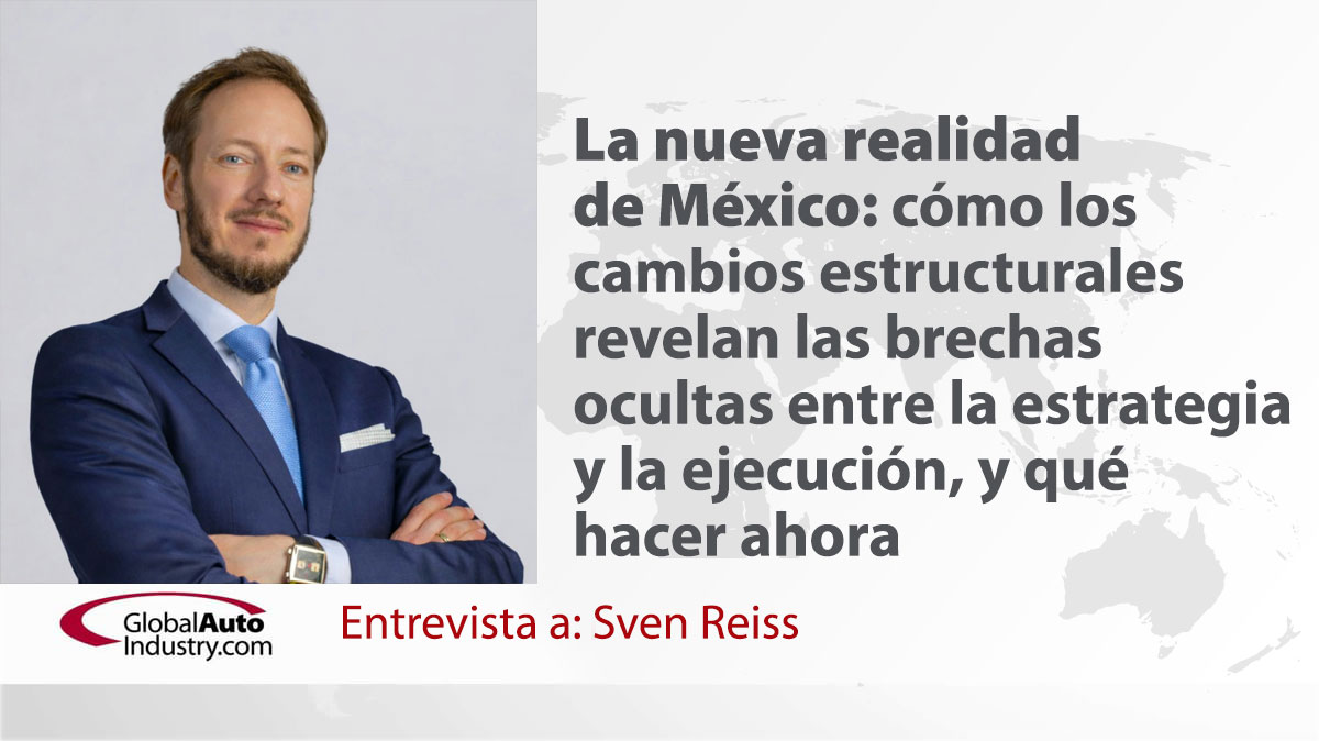 La última entrevista de audio de GlobalAutoIndustry.com, «La nueva realidad de México: cómo los cambios estructurales revelan las brechas ocultas entre la estrategia y la ejecución, y qué hacer ahora», cuenta con la participación de Sven Reiss. El Sr. Reiss es un ejecutivo interino y líder en transformación con 17 años de experiencia práctica y en puestos de alta dirección, guiando a empresas automotrices y manufactureras globales a través de complejos procesos de reestructuración y transformación del rendimiento. Antiguo director general, director financiero y director de riesgos, combina la disciplina financiera, la ejecución operativa y el liderazgo estratégico para estabilizar organizaciones y restaurar o aumentar la rentabilidad. Reiss ha liderado reestructuraciones holísticas, reestructuraciones de plantas e iniciativas de rendimiento transfronterizas en Europa y América. Nacido en Alemania y con raíces familiares en México, tiende puentes entre las diferencias culturales y operativas entre México, Estados Unidos y Europa. Actualmente ejerce como ejecutivo interino y asesor centrado en transformaciones de alto riesgo y en la creación de valor sostenible.