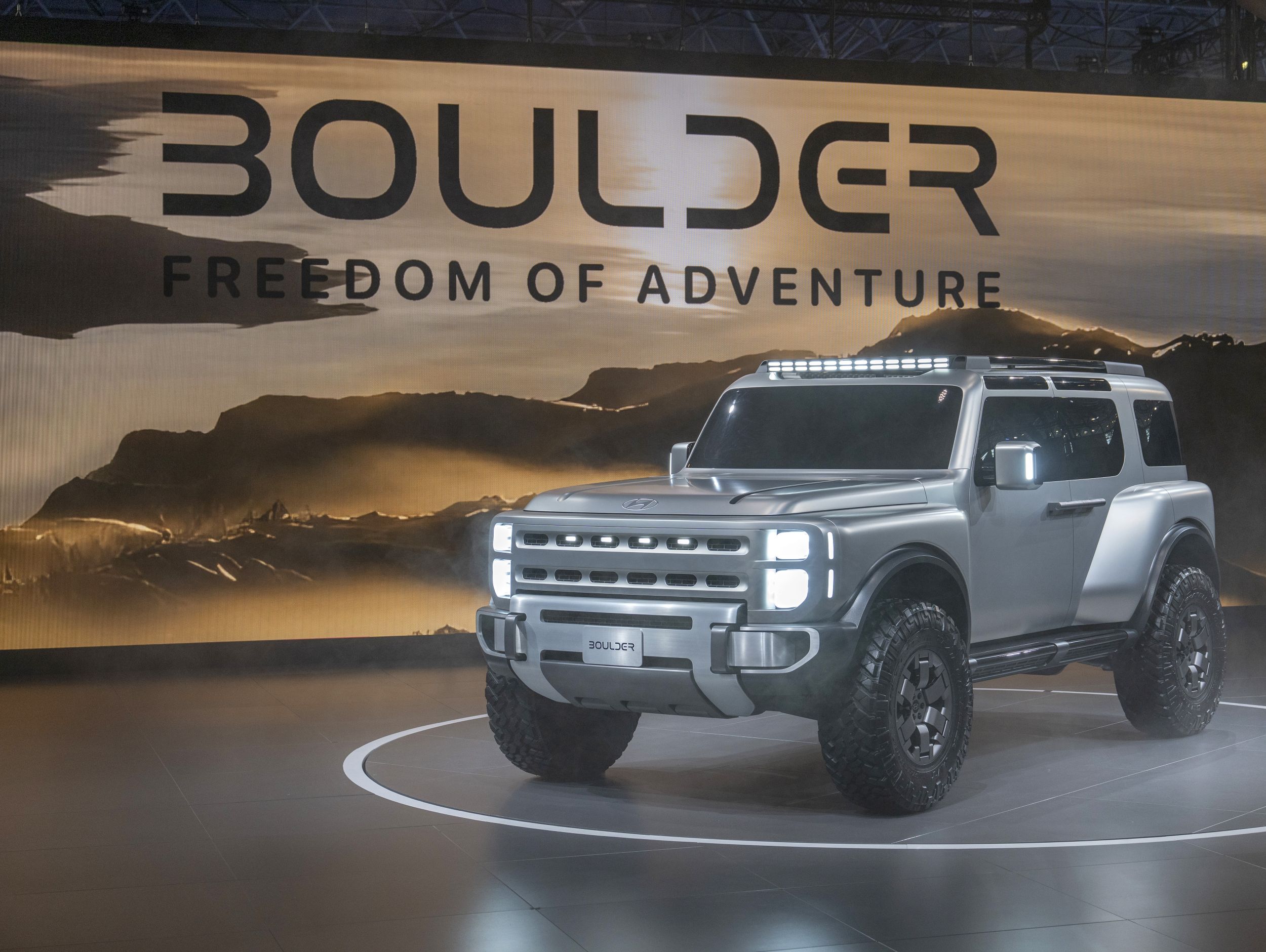 Esta robusta construcción tipo bastidor de escalera del Boulder Concept ha sido durante mucho tiempo la preferida por los consumidores estadounidenses que buscan camionetas y SUV con capacidades todoterreno, de remolque y transporte de cargas pesadas.